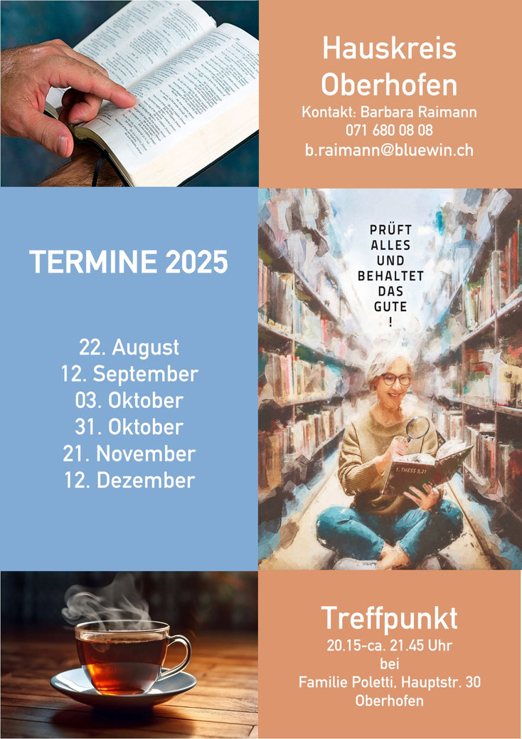 Unsere Gruppe von Männern und Frauen möchte den Schatz in diesem Buch gemeinsam erschliessen und so entdecken wir neue Passagen und alte Passagen neu. Im Gespräch kommen wir Gott und