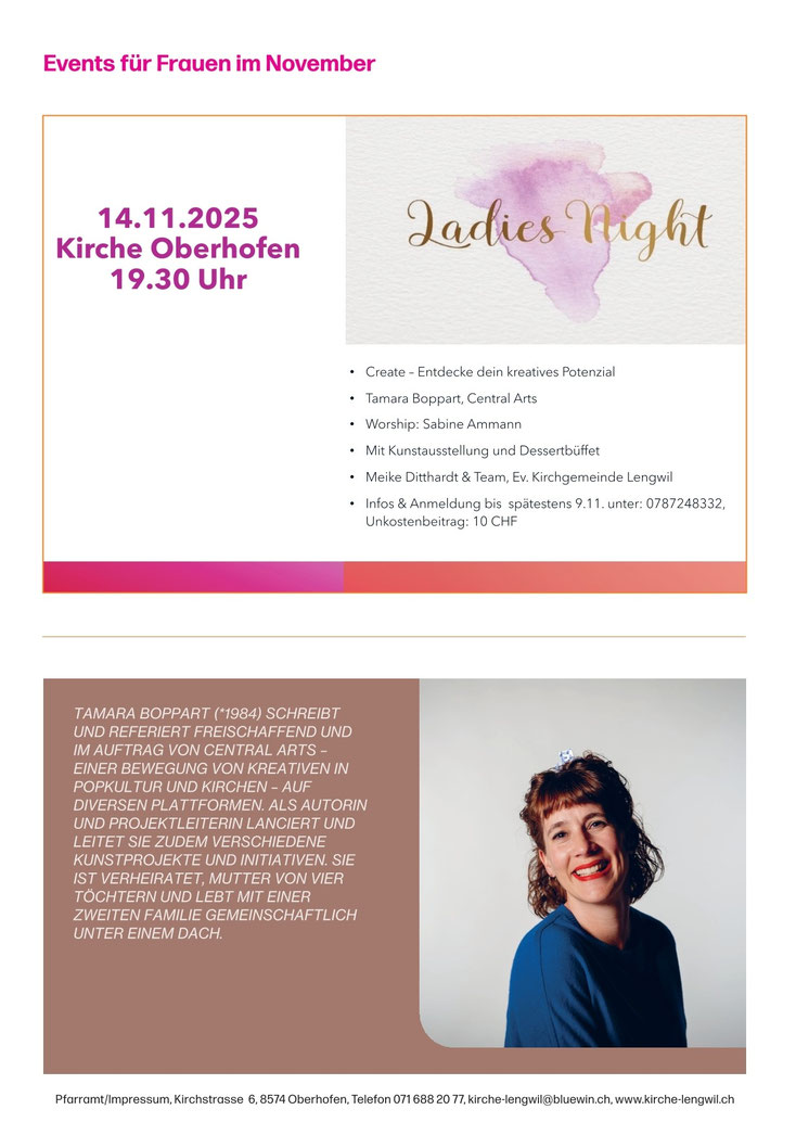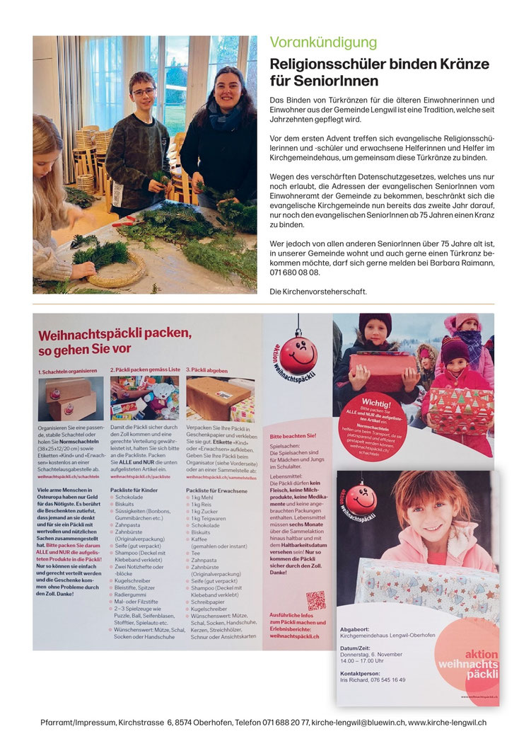CH83 8080 8009 6814 0477 7 E. Mail: kirche-lengwil@bluewin.ch Kasualien nach telefonischer Anmeldung